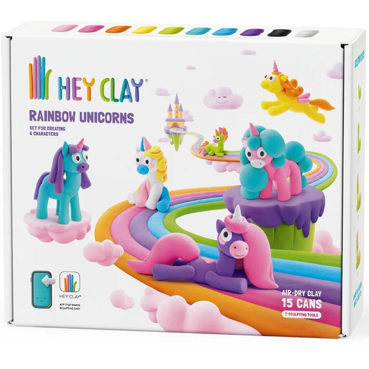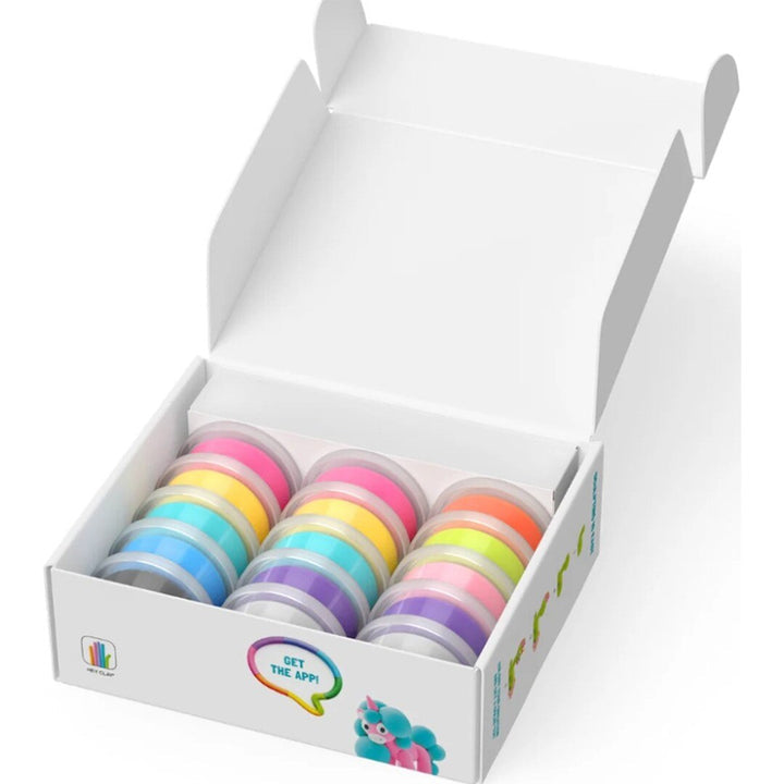 Kleurrijke kleisets met een bijbehorende app voor interactieve knutselplezier.