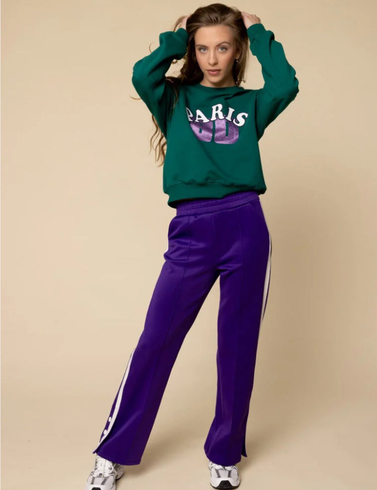 Deze paarse sporty pants van Looxs is dé perfecte mix van comfort en stijl. De diepe paarse kleur geeft de broek een trendy, moderne look, terwijl de witte streep aan de zijkant zorgt voor een sportieve touch met een knipoog naar de athleisure trend. Een echte must-have voor meiden die er cool uit willen zien én zich vrij willen bewegen.