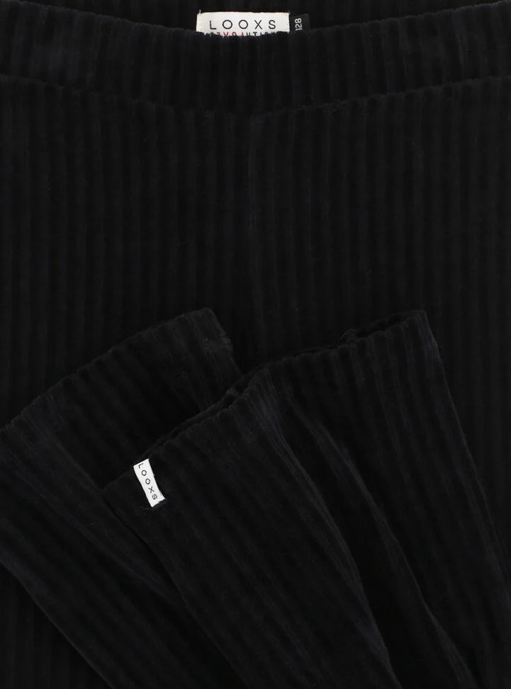 Dit flared rib zwart broekje van Looxs Little is een stijlvolle en comfortabele toevoeging aan je garderobe! Het ribstofje geeft de broek een fijne textuur, terwijl de zwarte kleur zorgt voor een tijdloze, chique uitstraling. De flared pasvorm voegt een speelse, retro touch toe, waardoor dit broekje niet alleen super trendy is, maar ook fijn zit. Of je het nu combineert met een oversized sweater voor een casual look of met een mooie top voor een iets elegantere outfit, dit broekje past bij elke gelegenheid. Perfect voor meiden die van een veelzijdige en comfortabele stijl houden, maar ook van een beetje flair!