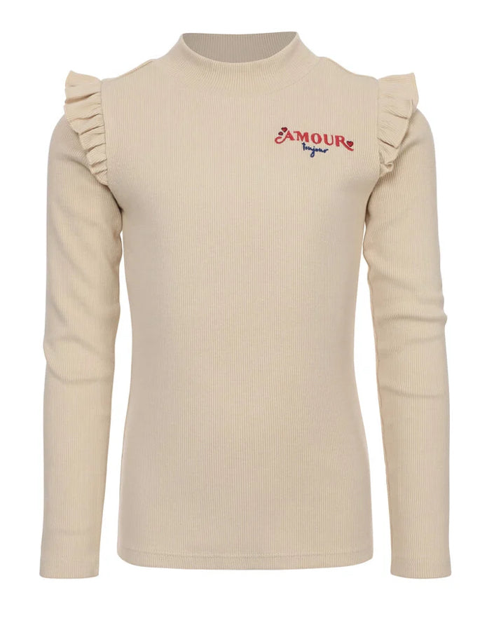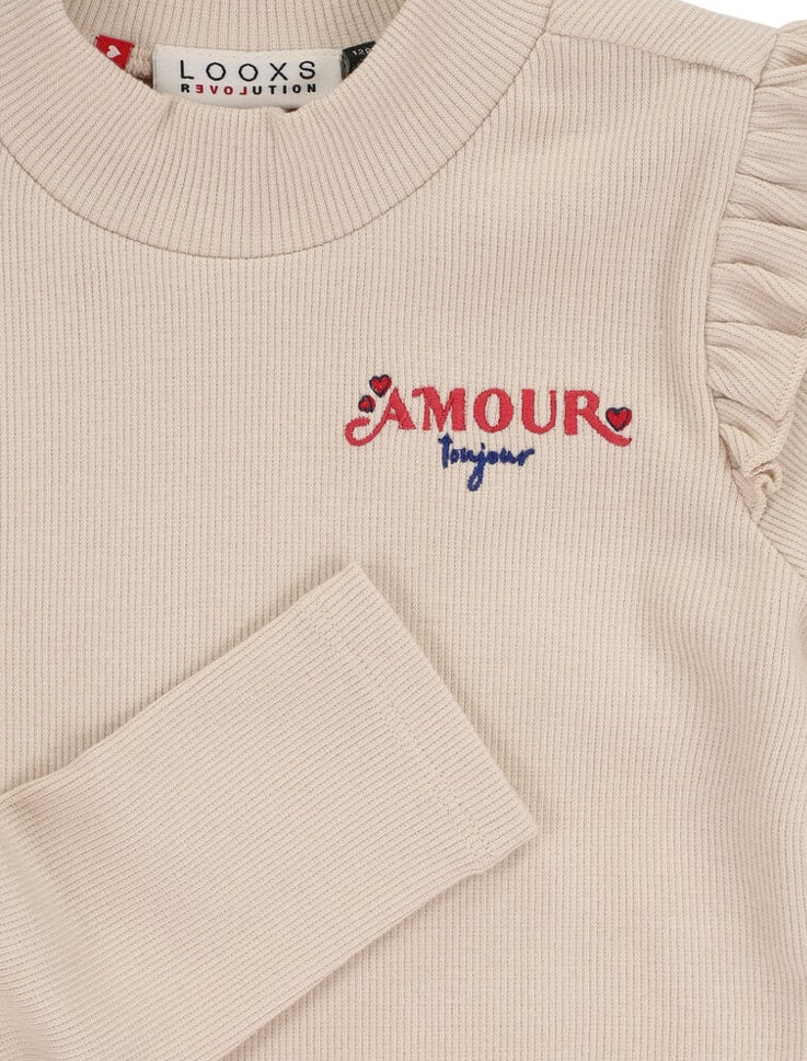 Looxs Little | Rib t-Shirt With Ruffles Soft Sand