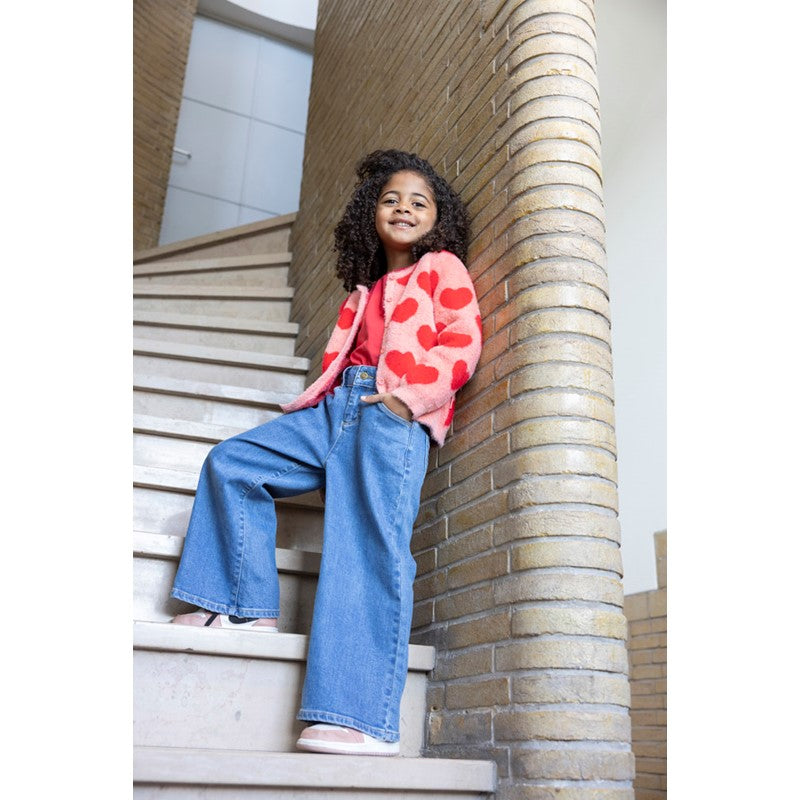 Dit lichtroze fluffy vestje is pure knuffelcomfort. Het zachte, pluizige materiaal voelt heerlijk warm en cozy aan, perfect voor de koelere dagen. Wat het vestje extra lief maakt, zijn de opvallende rode hartjes die speels over het hele vestje verspreid zijn. Een vrolijke en liefdevolle touch die meteen de aandacht trekt.