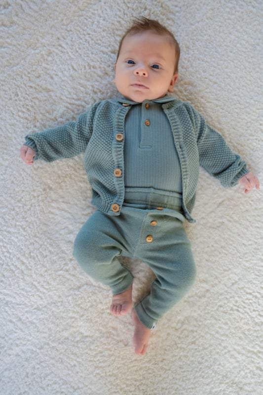 Een echte musthave…deze gebreide sweater van Klein baby in de kleur Stone Green. De rustige groentint geeft de sweater een natuurlijke uitstraling en een tijdloze  uitstraling, waardoor  het gemakkelijk te combineren is met zowel basic broekje of eentje met een vrolijk printje.