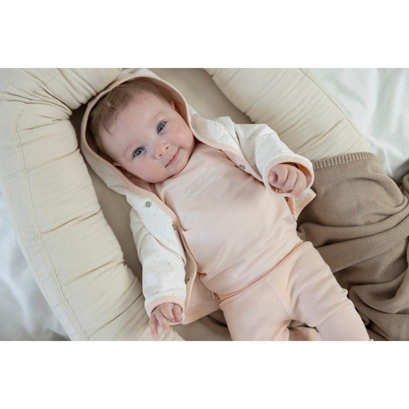 De longsleeve heeft een fijne pasvorm en drukknoopjes op de schouder (bij de kleinere maten) voor makkelijk aan- en uittrekken. Combineer ‘m met een jeans of een zacht joggingbroekje voor een complete look