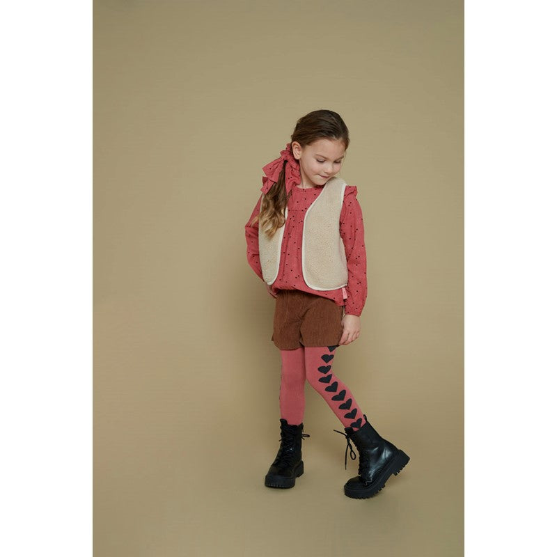 Hoe leuk is deze roze maillot van Jubel? Aan de zijkanten pronken schattige zwarte hartjes die zorgen voor een speelse twist. De maillot is gemaakt van een zachte, stretchy kwaliteit die heerlijk zit en perfect is voor koude dagen. Combineer met een rokje of jurkje voor een complete en vrolijke look.