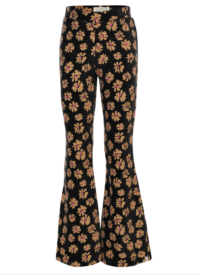 Looxs little | Velours Flared broekje | Winter flower zwart